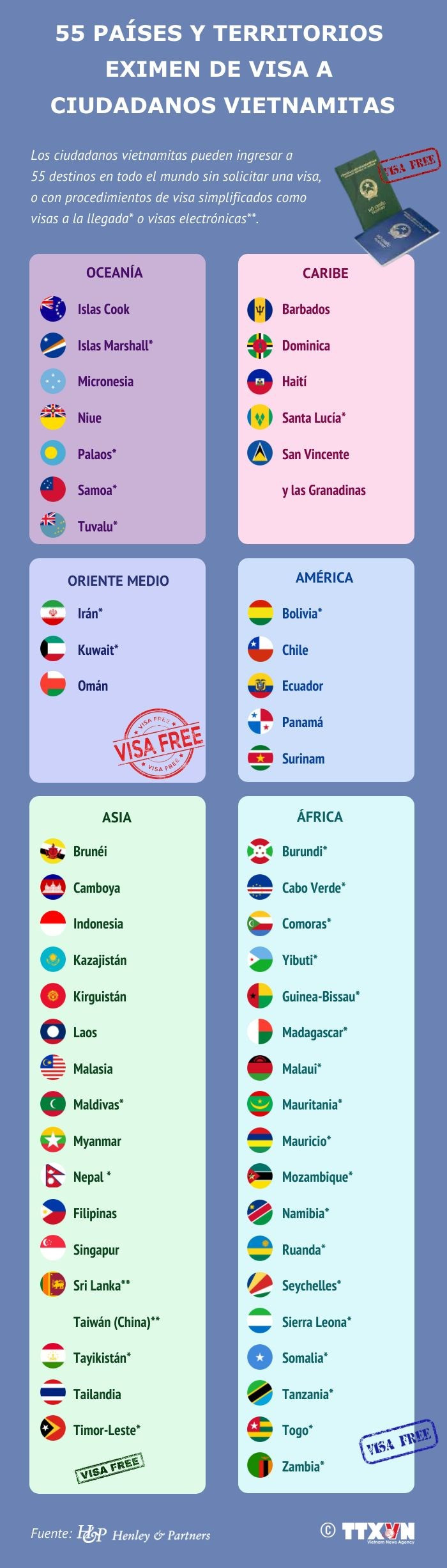 Los ciudadanos vietnamitas pueden ingresar a 55 destinos en todo el mundo sin solicitar una visa, o con procedimientos de visa simplificados como visas a la llegada o visas electrónicas.