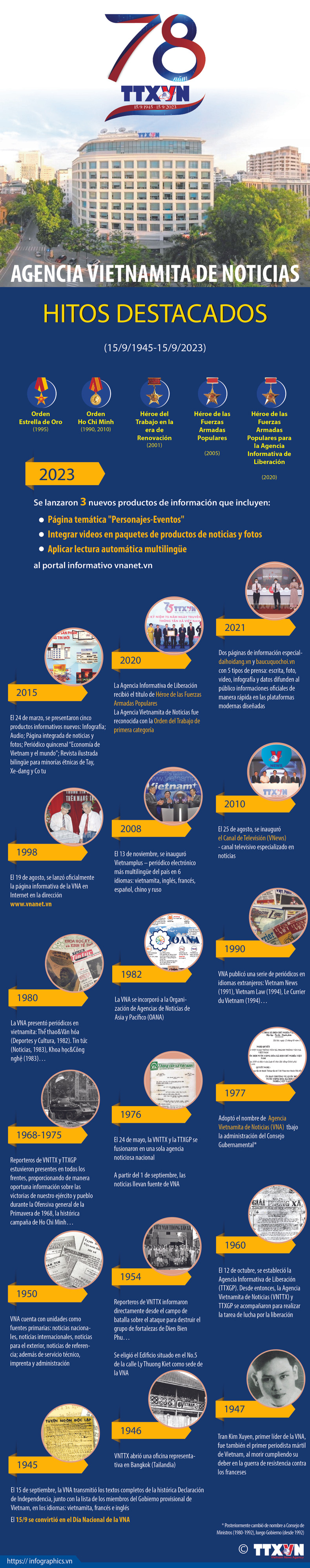 A lo largo de 78 años de desarrollo (15 de septiembre de 1945), la Agencia Vietnamita de Noticias (VNA) siempre ha cumplido su función de difundir informaciones oportunas y actualizadas al sistema de medios de comunicación nacionales y extranjeros.