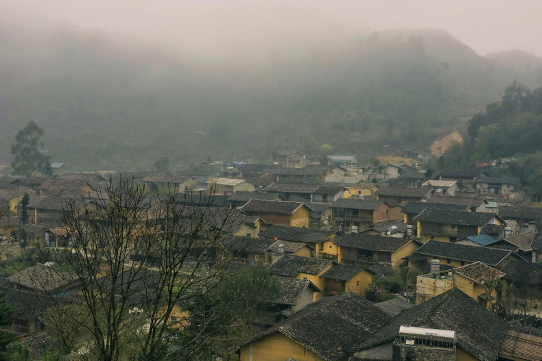 | El asta de la bandera de Lung Cu visto desde el pueblo de Lo Lo Chai. |