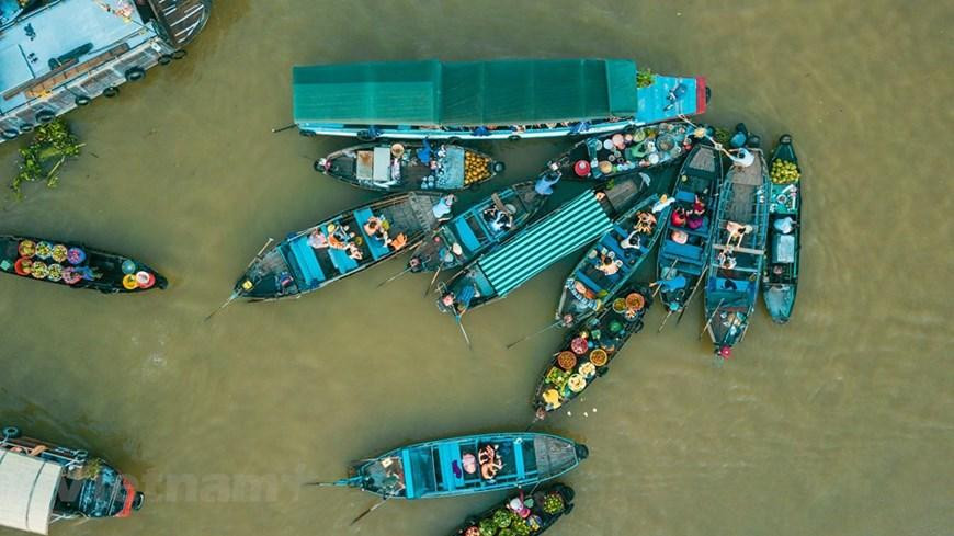 El momento ideal para visitar el mercado flotante Cai Rang es de 5:00 am a 8:00 am. (Fotografía: Vietnam+)