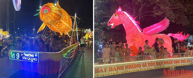 Las procesiones se reúnen en las calles principales alrededor de la plaza Nguyen Tat Thanh y luego regresan a los grupos residenciales. Así, el Festival del Medio Otoño de los niños de Tuyen Quang ha durado más de un mes.