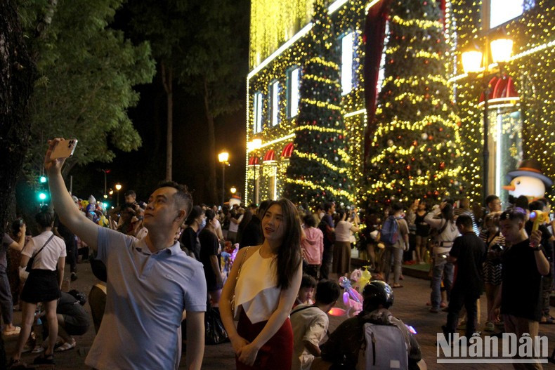 | Los centros comerciales en el Distrito 1 se embellecen con gigantescos árboles iluminados. |