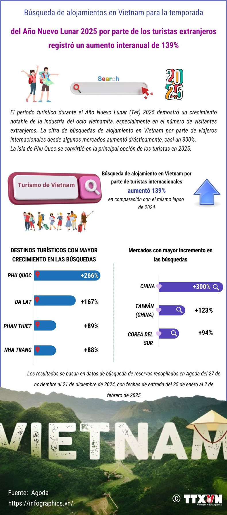 El periodo turístico durante el Año Nuevo Lunar (Tet) 2025 demostró un crecimiento notable de la industria del ocio vietnamita, especialmente en el número de visitantes extranjeros.