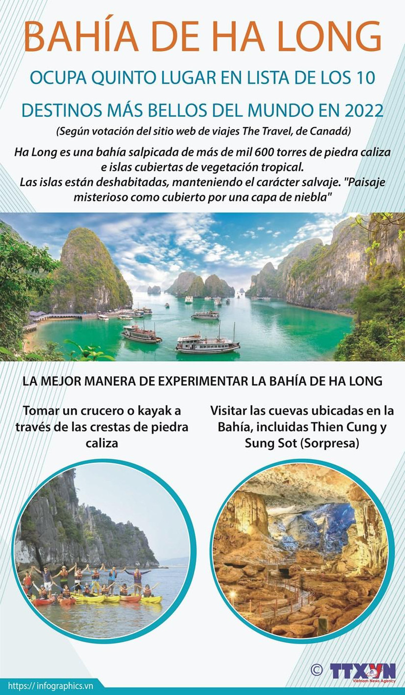La Bahía de Ha Long, en Vietnam, se clasifica entre los destinos más bellos del mundo, según la Agencia de Noticias del país indochino.