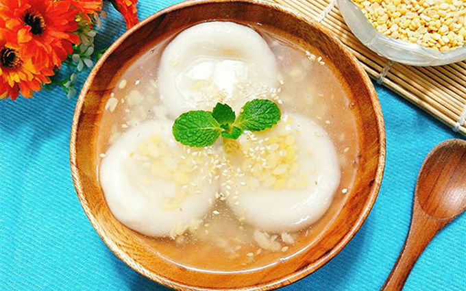Las bolas del “Banh Troi” se ponen a hervir. Cuando están cocinadas y ‘flotan’, se remojan en agua fría para que estén firmes. Antes de colocarse en el plato para comer, se decoran con un poco de sésamo y coco rallado.