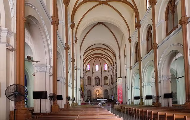 La catedral fue construida cuando los colonialistas franceses invadieron Vietnam.