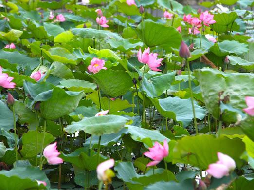 | Las flores de loto en el camino a la zona de reliquias Kim Lien. |