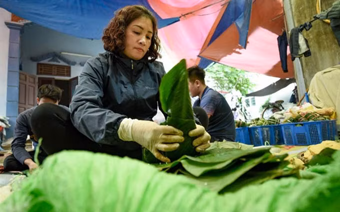 Por estas fechas, la aldea de Tranh Khuc siempre está bulliciosa con los pobladores trabajando en la elaboración del pastel y los coches y las motos que vienen a comprar el ‘Banh Chung’.