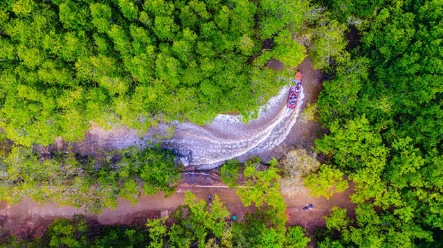 La Reserva de la Biosfera del Bosque de manglares de Can Gio se ubica aguas abajo del sistema del río Dong Nai y el río Saigón, a 40 kilómetros del centro de Ciudad Ho Chi Minh.