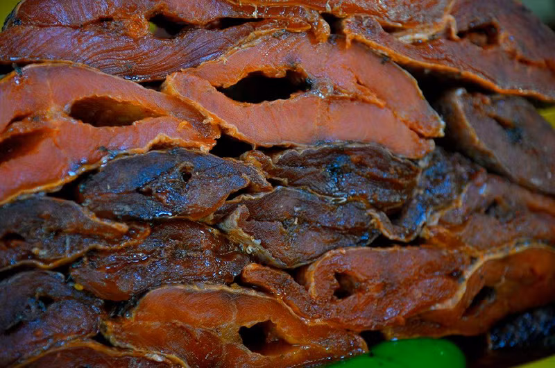 Los precios dependen del tamaño del pez en salazón. Algunas especies populares son ‘ca loc’ (Channa striata) y ‘ca linh’ (Henicorhynchus siamensis).