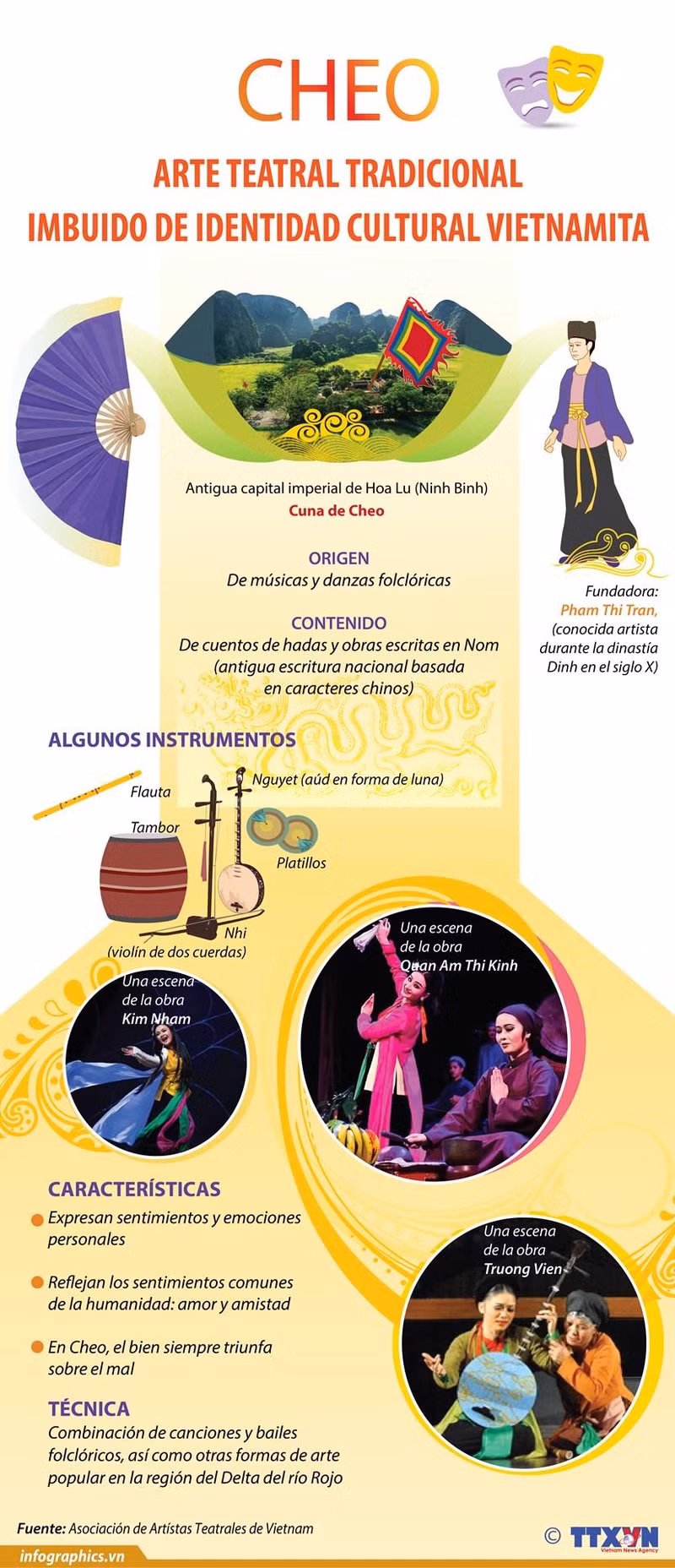 Originado de la antigua capital imperial de Hoa Lu (Ninh Binh), el Cheo es un género teatral de Vietnam que combina canciones y bailes folclóricos, así como otras formas de arte popular en la región del Delta del río Rojo.