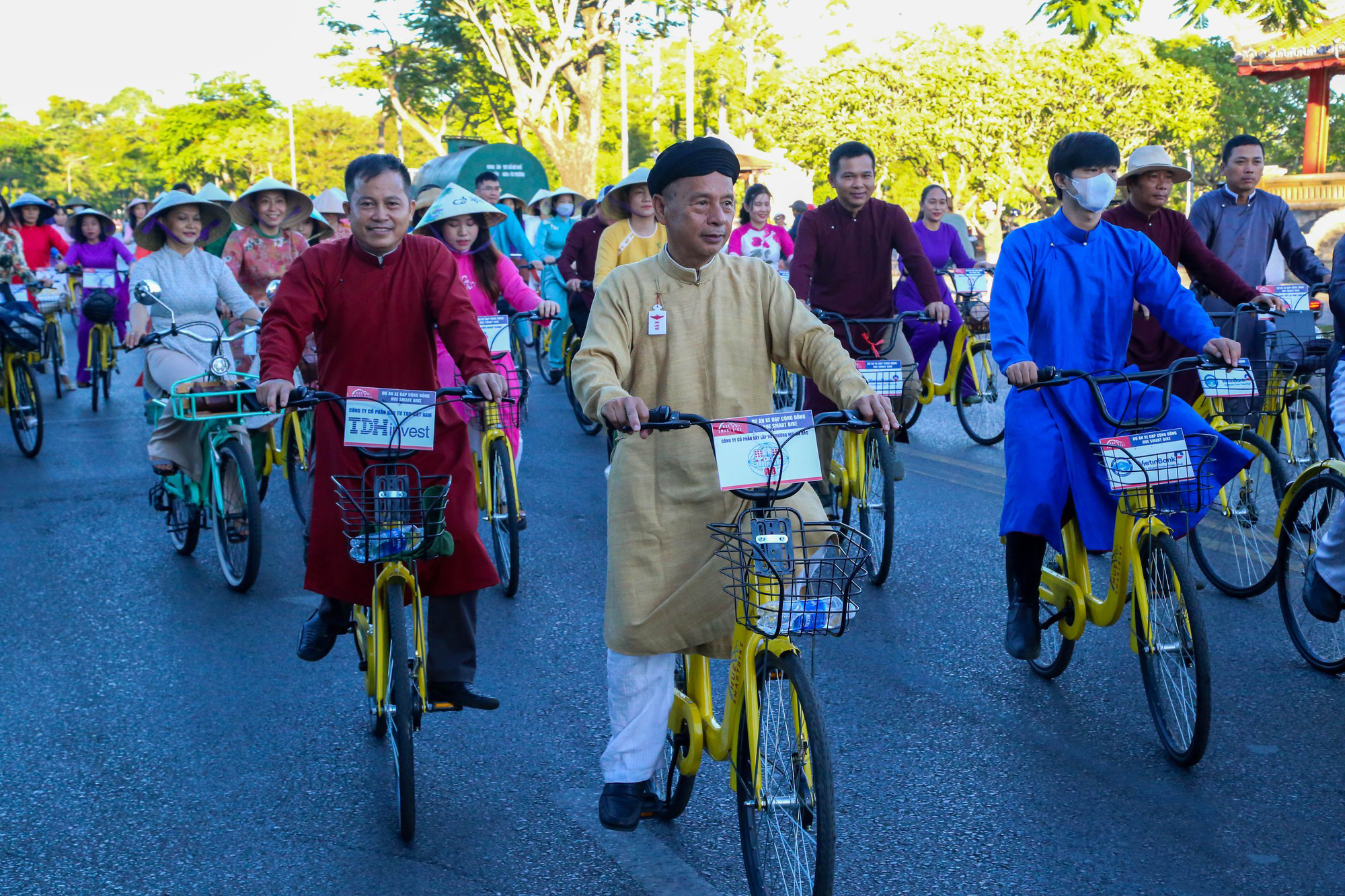 Cientos de personas pedalearon hoy en un paseo en bicicleta organizado por el Servicio de Cultura y Deportes de la provincia de Thua Thien - Hue en honor de la Semana Ao Dai de la ciudad de Hue 2023.