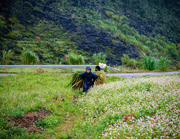 El recorrido por la meseta rocosa, desde el distrito de Yen Minh a Dong Van, seguido por la comuna de Lung Cu y el distrito de Meo Vac, ofrece a los visitantes numerosos campos, colinas y valles de flores de alforfón.