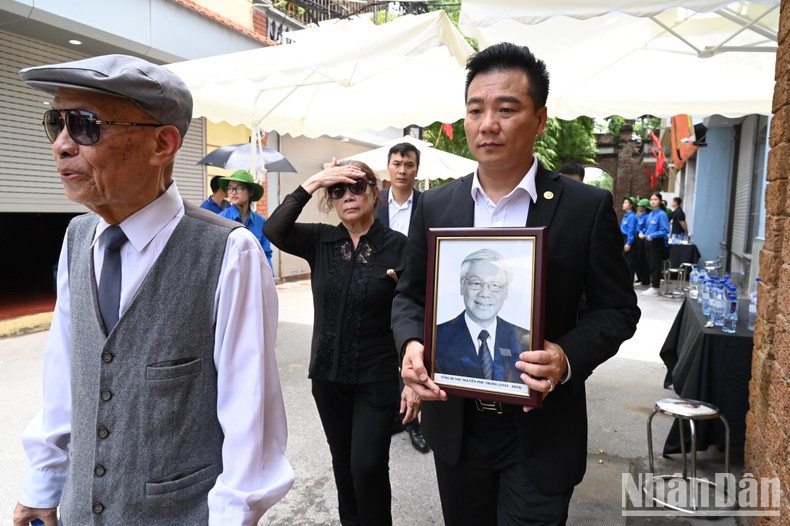 | Esta tarde, 25 de julio, muchas personas llegan a la aldea de Lai Da para rendir homenaje al secretario general Nguyen Phu Trong. |