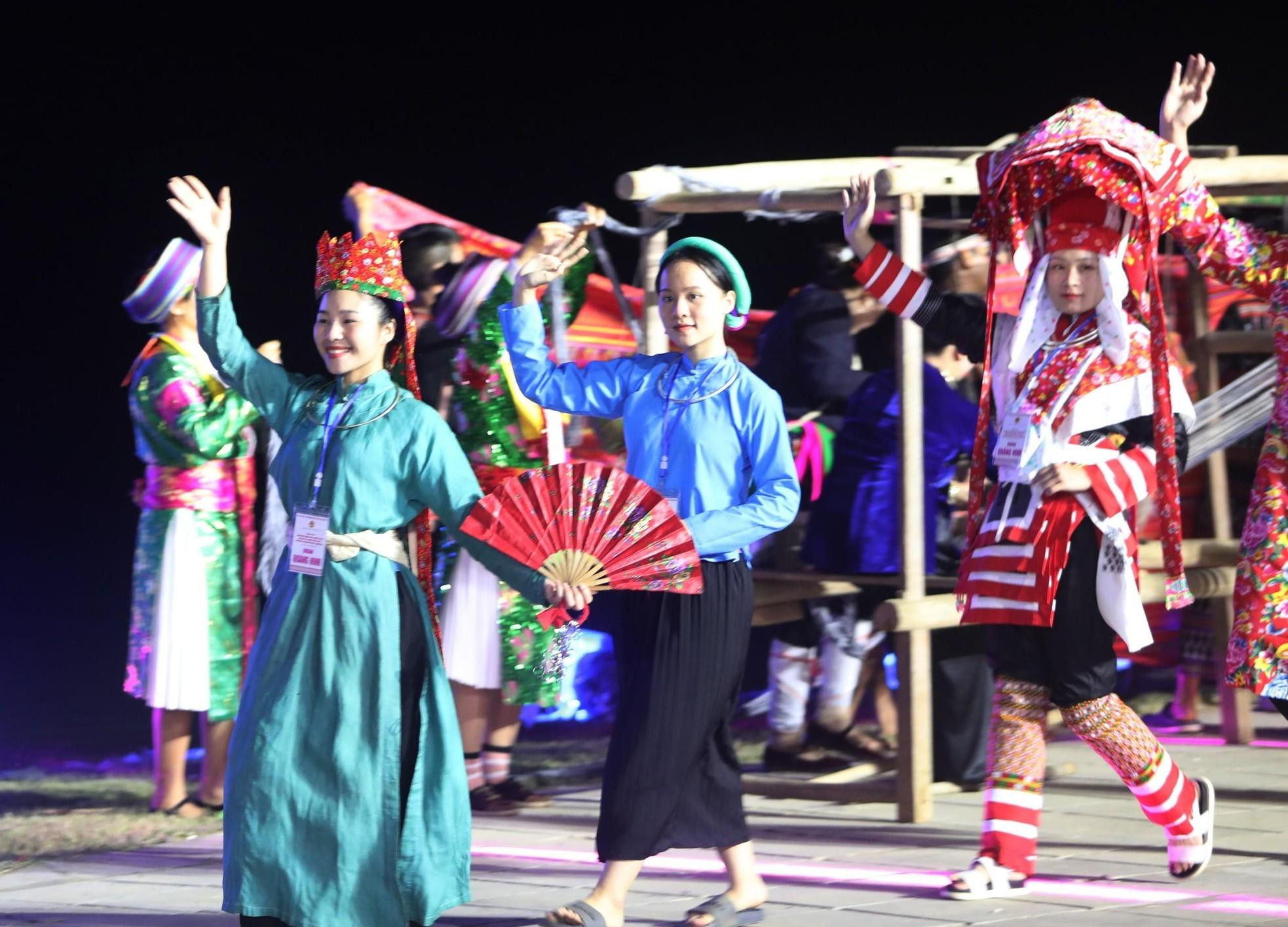| Desfile de trajes tradicionales de las etnias vietnamitas. |