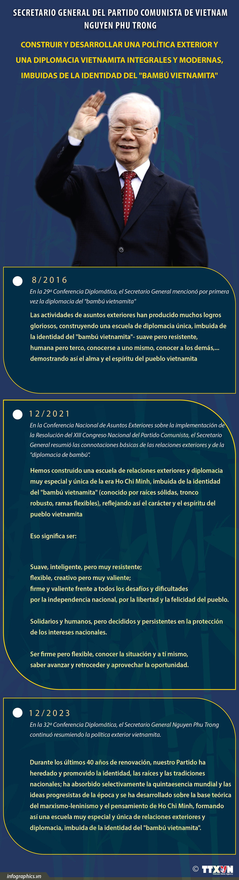En la 29 Conferencia Diplomática en 2016, el secretario general del Partido Comunista de Vietnam, Nguyen Phu Trong, mencionó por primera vez la diplomacia del “bambú vietnamita” y en la Conferencia Nacional de Asuntos Exteriores en diciembre de 2021, resumió las connotaciones básicas de las relaciones exteriores, imbuidas de la identidad del “bambú vietnamita”, árbol que tiene raíces sólidas, tronco robusto, ramas flexibles, reflejando así el carácter y el espíritu del pueblo vietnamita.