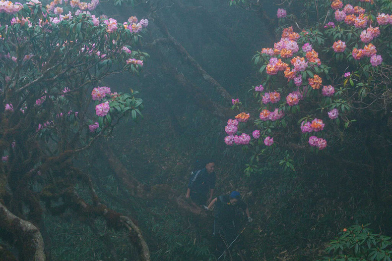 | Cuanto más alto llegan, los turistas pueden ver más azaleas. Los bosques en Ta Leng siguen siendo prístinos, con árboles centenarios cubiertos de musgo. |
