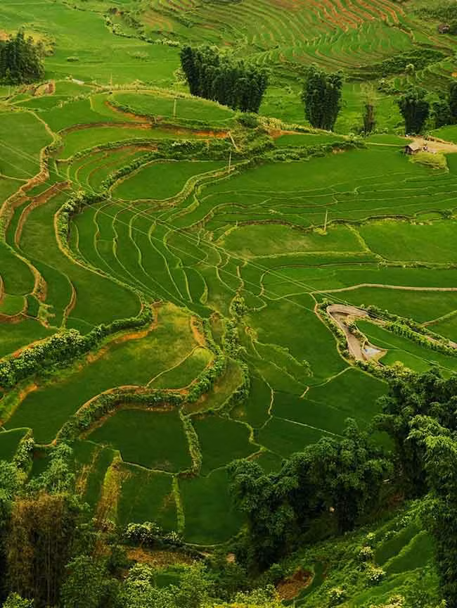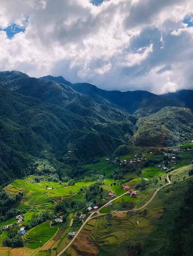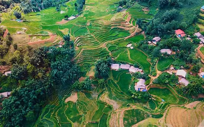 Desde arriba, el valle de Muong Hoa es tan hermoso como una pintura poética con diversas casas sencillas en medio de los campos verdes en terrazas y montañas casi interminables. (Fotografía: VOV)