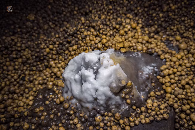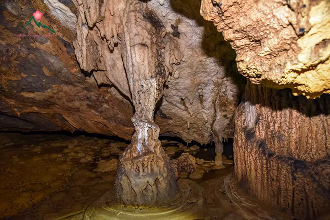 Al avanzar a lo más profundo de la cueva, los expertos pueden ver estalactitas de forma redonda con una superficie áspera, además de un pozo de piedra caliza de dos metros de profundidad.