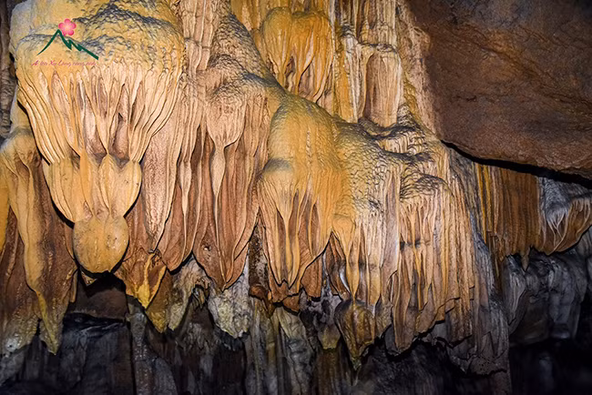 Luego de cruzar un túnel estrecho, se llega un espacio de estalactitas y estalagmitas de diversas formas.