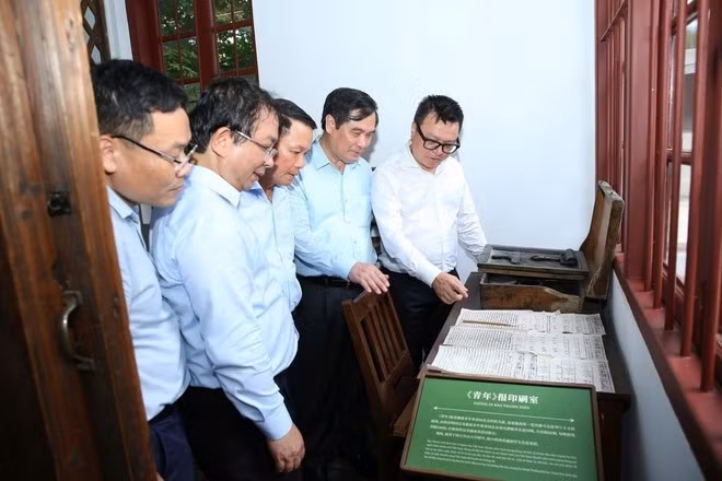La delegación visita el lugar donde Nguyen Ai Quoc y miembros de la Asociación de Jóvenes Revolucionarios de Vietnam compilaron, grabaron e imprimieron el periódico. (Foto: VNA)