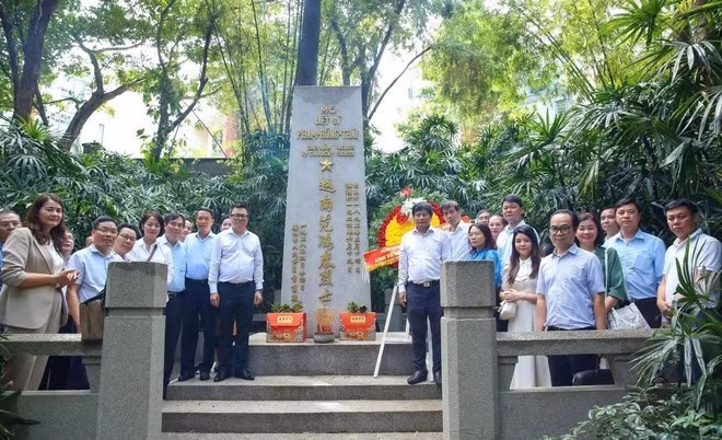 Antes, la delegación de la Asociación de Periodistas de Vietnam rindió homenaje al mártir Pham Hong Thai en el parque del cementerio de la ciudad de Guangzhou, a fin de reconocer sus contribuciones y agradecer su heroico sacrificio por la causa revolucionaria del Partido y la nación.