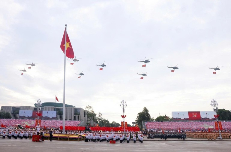 La ceremonia se celebra en la histórica plaza de Ba Dinh, donde hace 80 años el Presidente Ho Chi Minh leyó la Declaración de Independencia, con la que se proclamó el nacimiento de la República Democrática de Vietnam (actual República Socialista de Vietnam).
