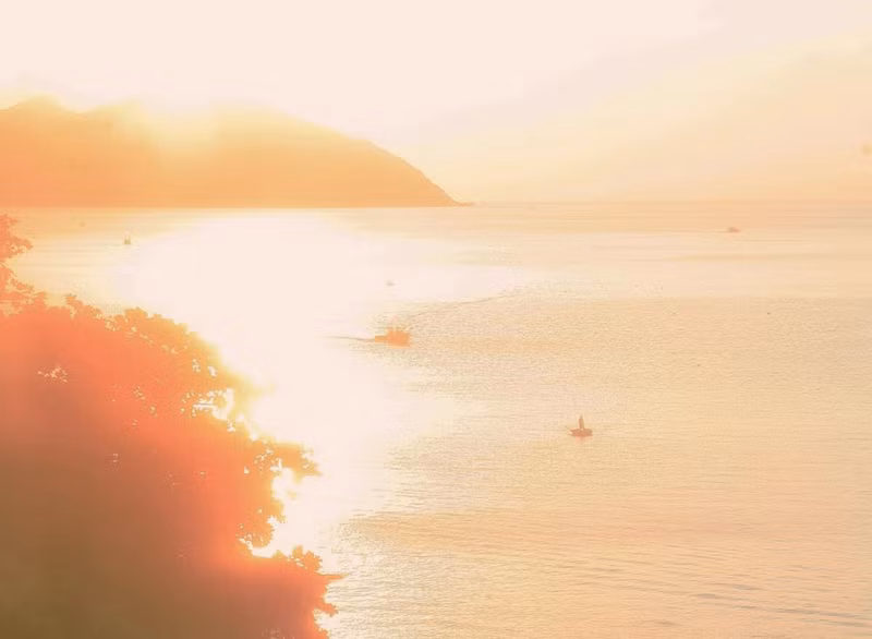 Foto tomada desde una ventana de un vagón de tren en el viaje desde la estación de Saigón a la de Tuy Hoa, pasando por la bahía de Vung Ro, en la provincia de Phu Yen.