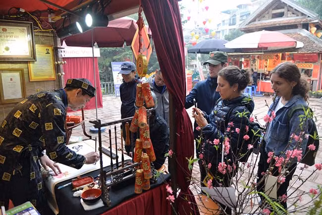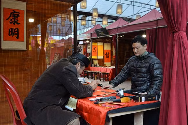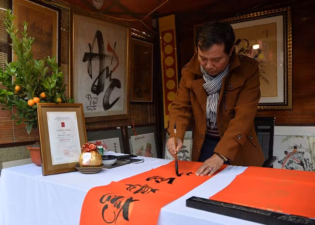 Para los vietnamitas, el pedir letras caligráficas a inicios del año nuevo lunar es una costumbre que data de mucho tiempo. Muestra el respeto hacia los conocimientos, así como el deseo de buena salud y prosperidad.