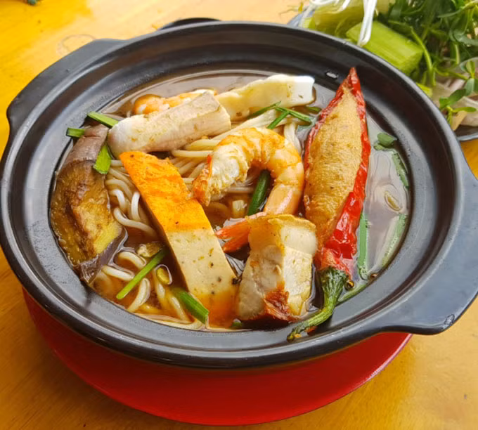 Los viajeros también tienen la oportunidad de probar los deliciosos platos típicos de la localidad, tales como: “Bun mam” (fideos con salsa de pescado) y “Lau ca keo” (olla caliente con un pescado que abunda en la región, cuyo nombre científico es Pseudapocryptes elongatus).