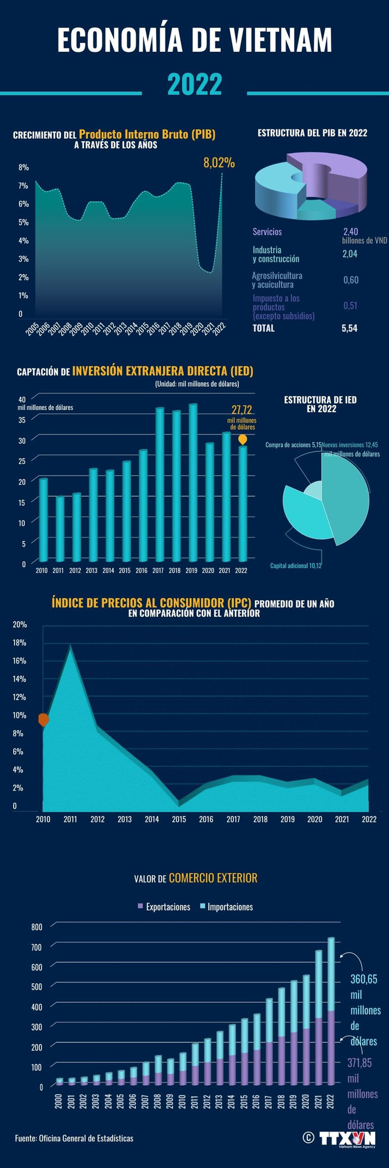 La economía de Vietnam prevé cerrar 2022 con un crecimiento del 8,02 por ciento, según la Oficina General de Estadísticas.