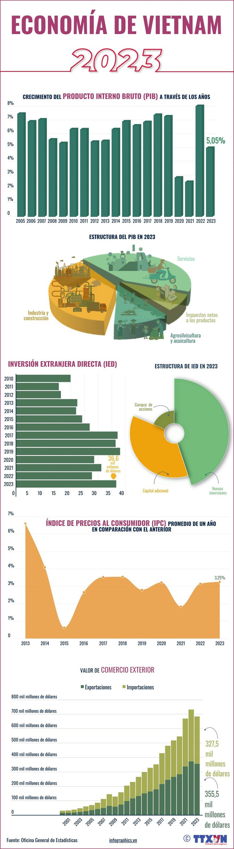 En 2023, la economía de Vietnam siguió recuperándose, la macroeconomía se mantuvo estable, la inflación logró controlarse, los equilibrios importantes estuvieron garantizados y muchos objetivos relevantes se cumplieron, lo cual consolidó la posición del país como un punto brillante económico en la región y el mundo.