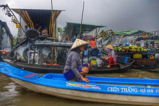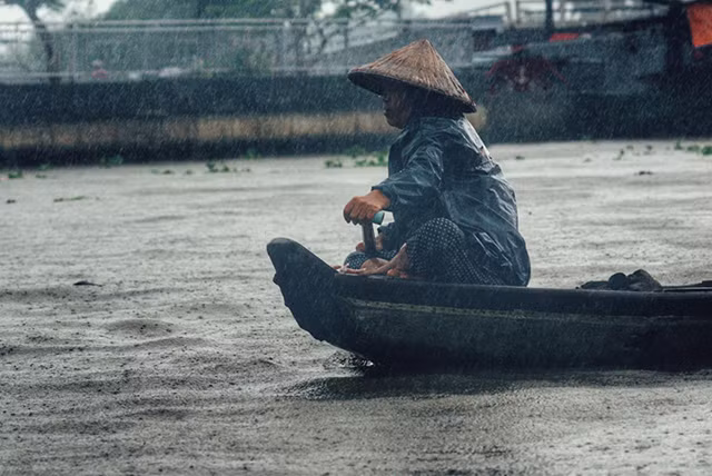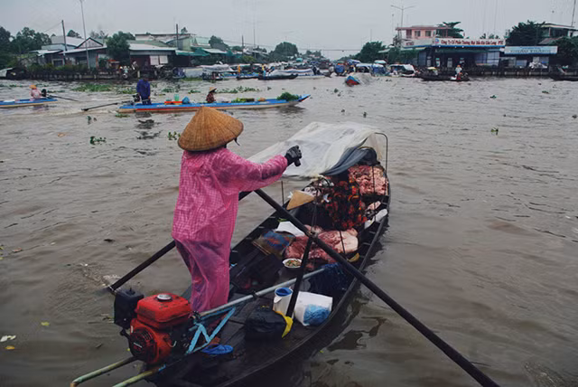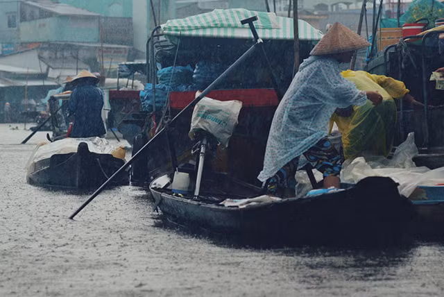 La temporada de lluvias en la región sudoeste se extiende de septiembre a noviembre, por lo que hay días que el mercado flotante de Nga Nam permanece borroso bajo la lluvia desde la madrugada.