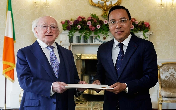 En su recepción al diplomático vietnamita, el mandatario irlandés destacó el desarrollo de la amistad y cooperación entre los dos países, especialmente en economía, colaboración para el desarrollo, educación y cultura.