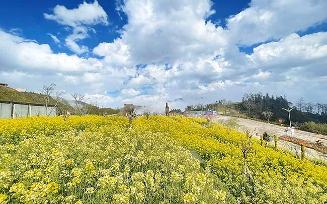 La primavera se “pinta” en las laderas del Fansipan con tiras de flores extendidas desde la estación del teleférico a la legendaria cima. Se halla un camino cubierto del color rosa de las flores de melocotón, el inmaculado blanco de las de albaricoque, un valle brillante de rosas, una colina de 7,5 hectáreas poblada de plantas de canola en plena apertura, capullos de rododendro que van abriendo en los montes...
