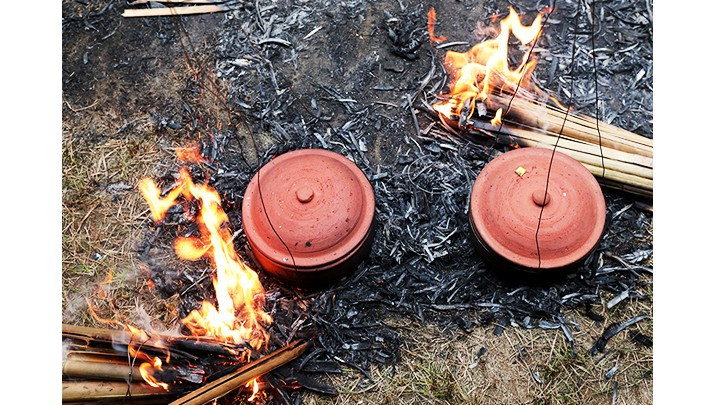 | Los equipos llevan arroz al templo de Van Son para un ritual. |