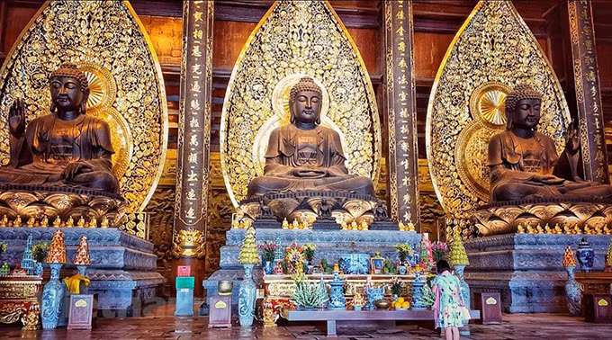 Las estatuas de Buda hechas de bronce, cada una con un peso de 200 toneladas, el nivel más pesado en el Sudeste asiático.