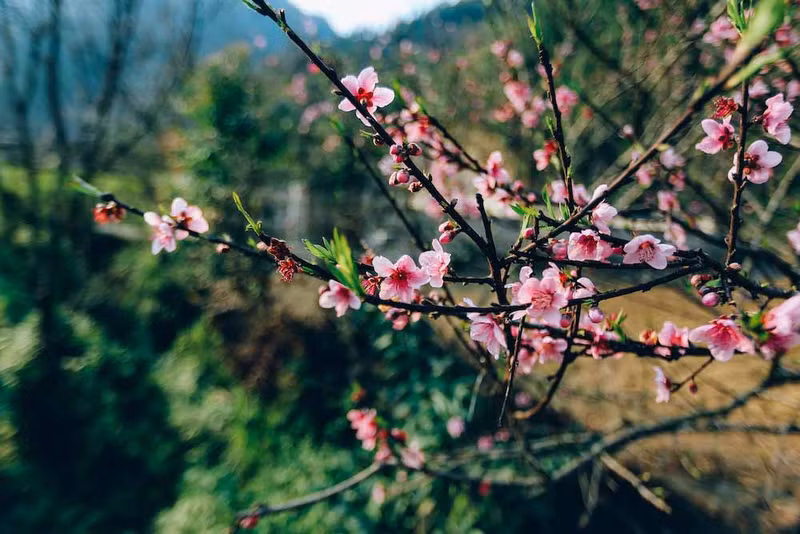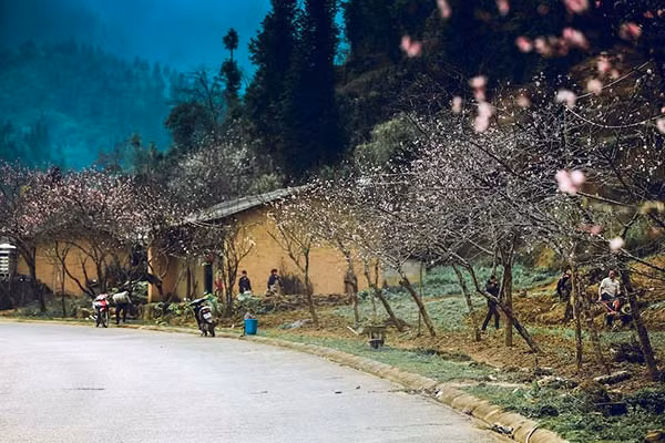 Los visitantes llegados a Ha Giang por esta época pueden sentir la belleza prístina de la meseta rocosa, combinada armoniosamente con la hermosura poética de las flores de melocotón.