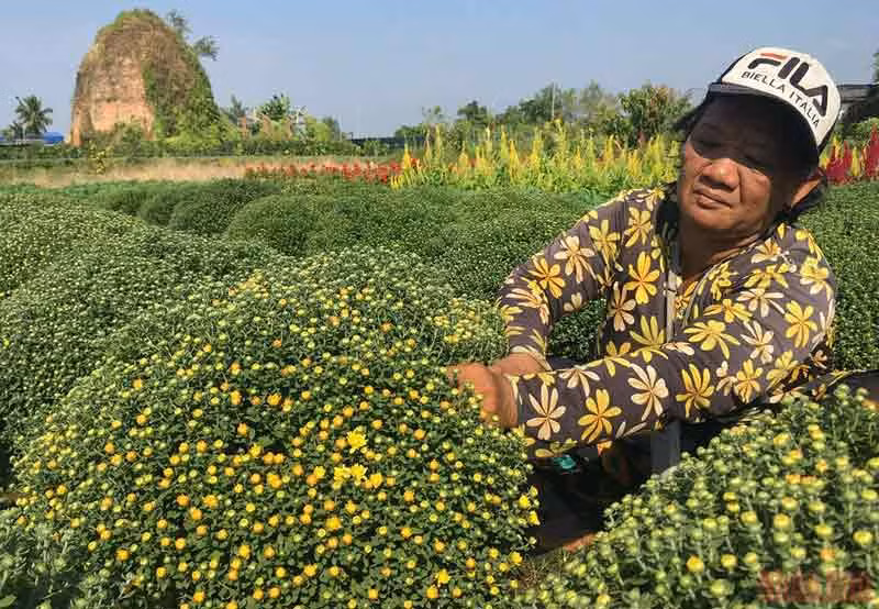 El distrito de Cho Lach es conocido como el reino de las flores y las plantas ornamentales al abastecer cada año con millones de productos a todas las provincias del país. Los campesinos producen flores tradicionales como el chrysanthemum morifolium, el tagete, la buganvilla, la ochna integérrima y la celosía, entre otras, para la venta durante el Tet.
