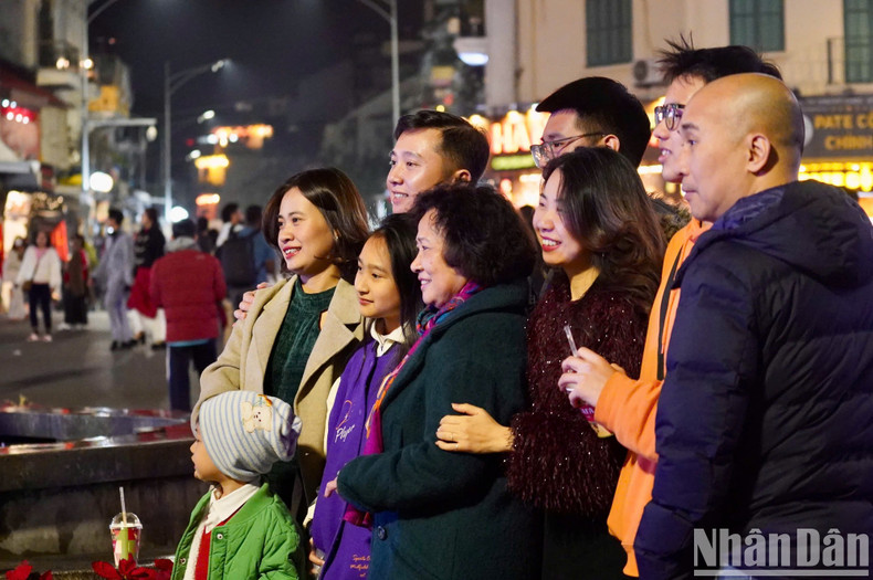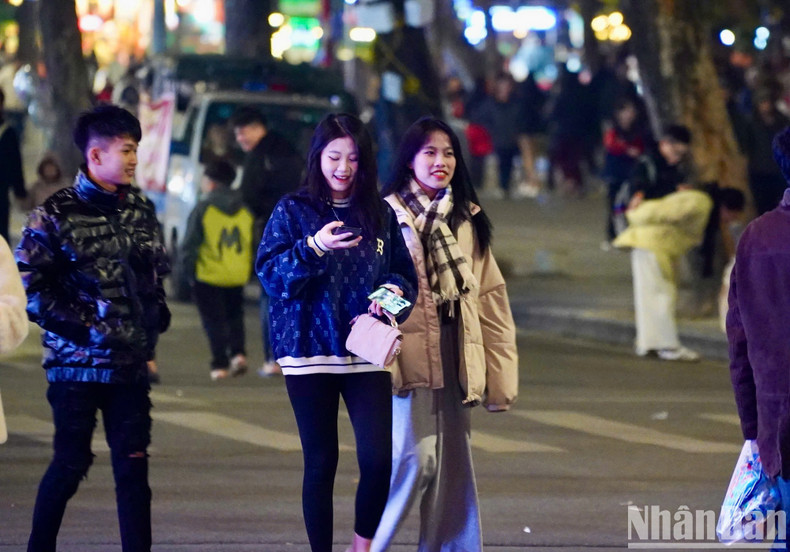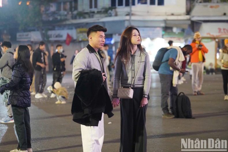 | A medida que el reloj marca la medianoche, más y más gente acude a la zona del lago Hoan Kiem. |