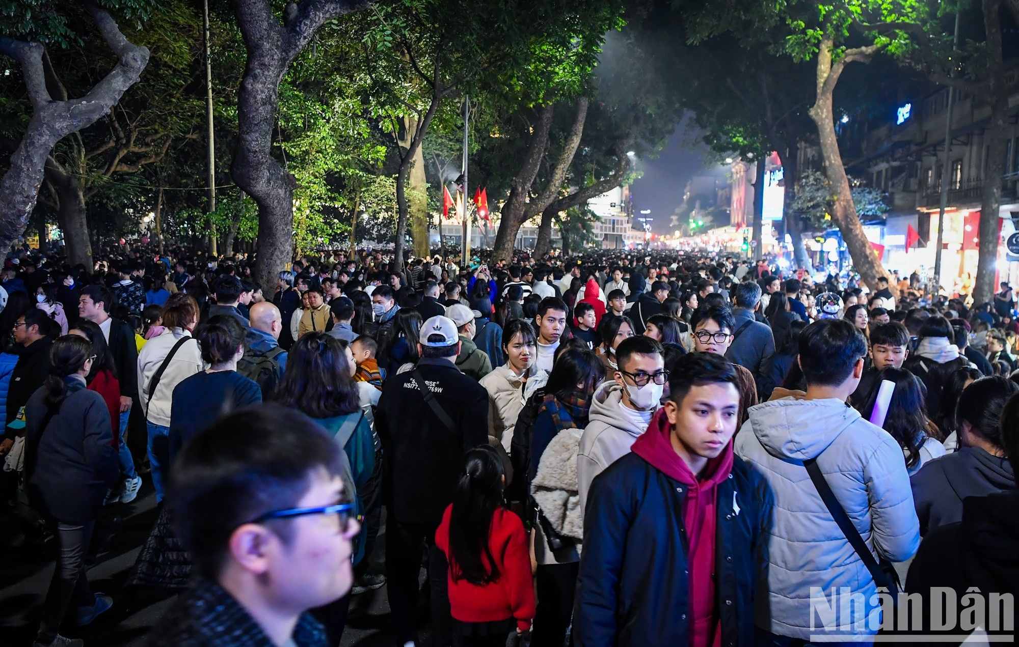 | A las 22.30 horas, las calles alrededor del lago Hoan Kiem están llenas de gente. |