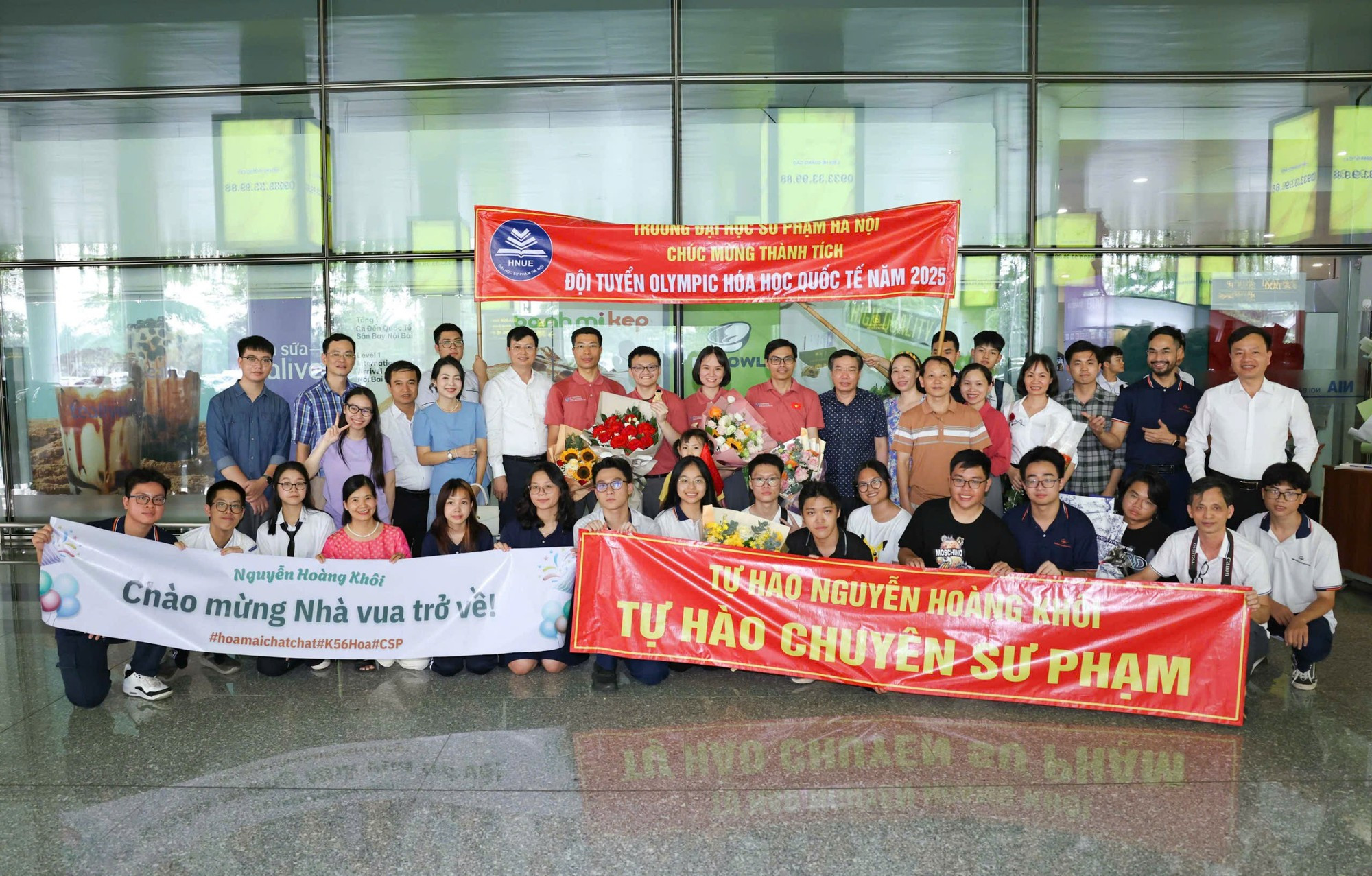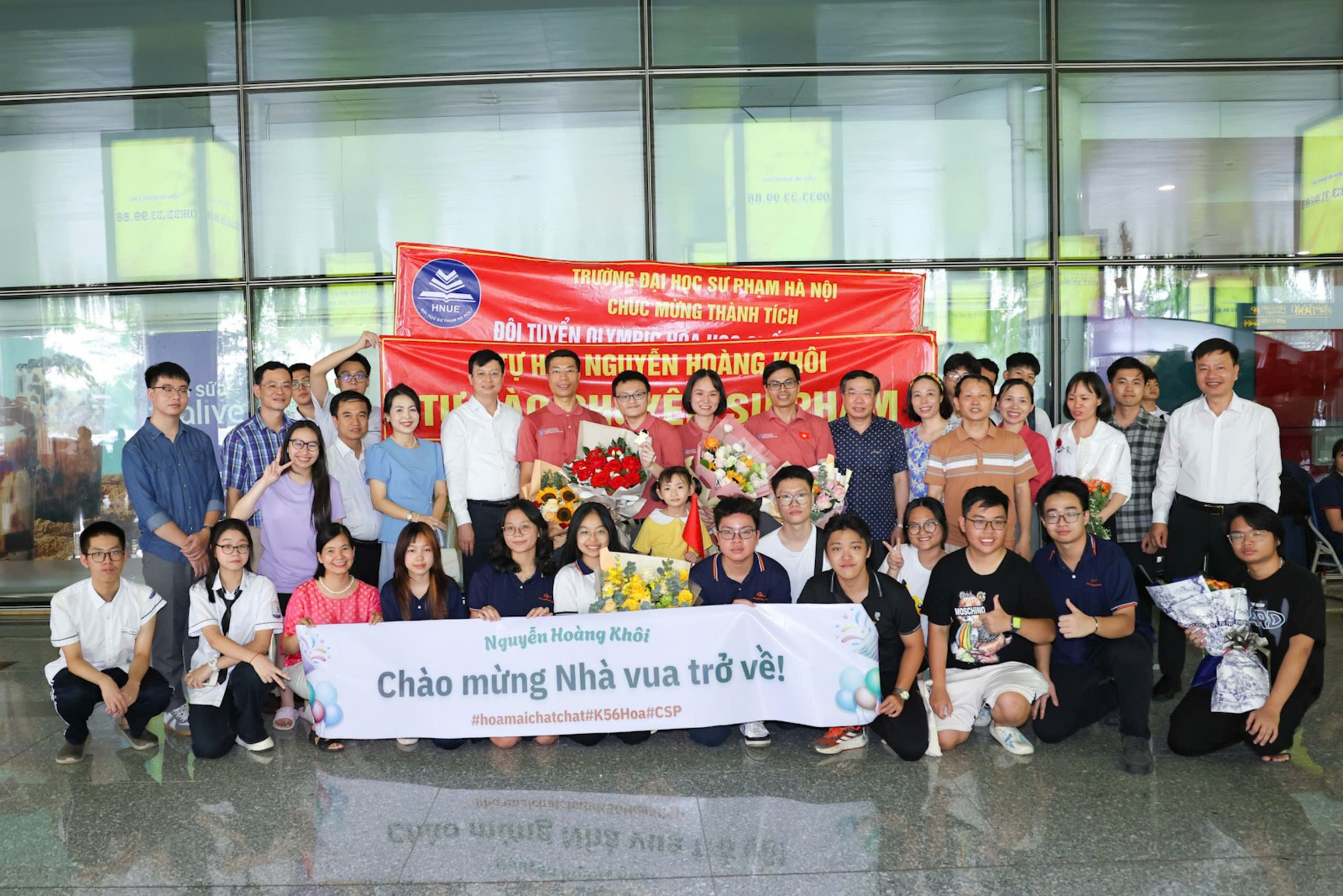 Los estudiantes vietnamitas que ganaron medallas en la 57ª Olimpiada Internacional de Química regresaron ayer por el Aeropuerto Internacional de Noi Bai, en Hanói, entre la cálida bienvenida de sus familiares, profesores y amigos.