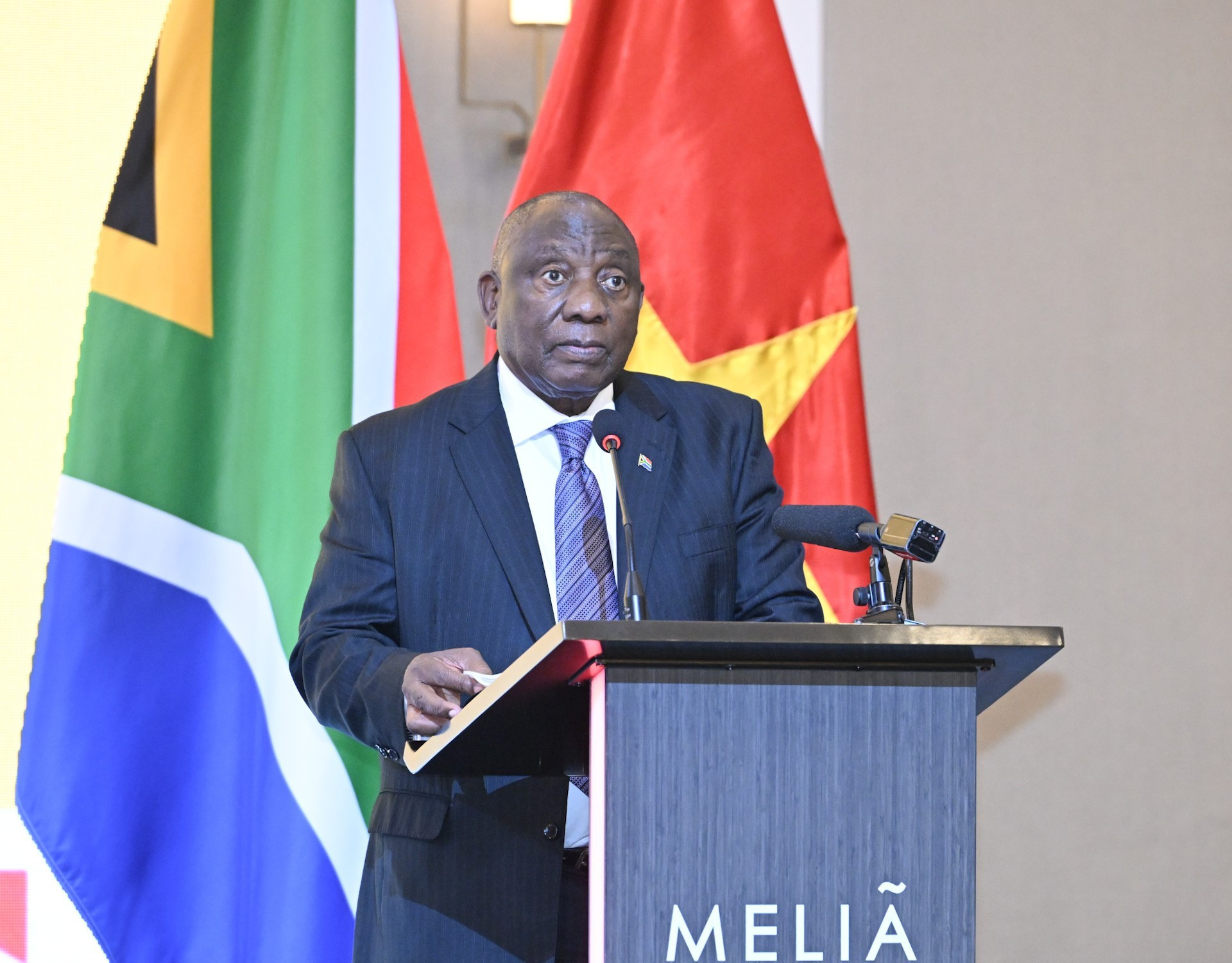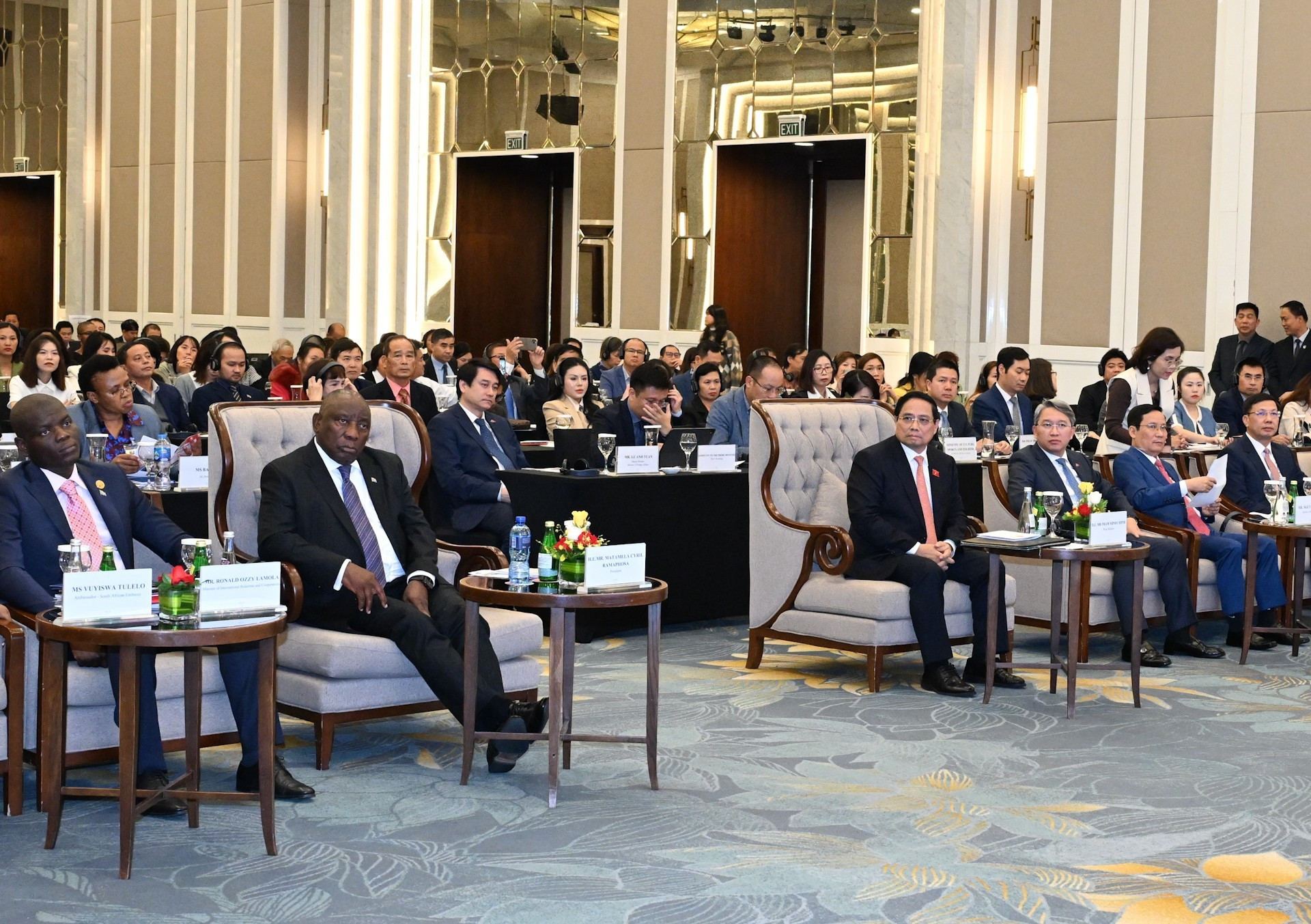 El primer ministro de Vietnam, Pham Minh Chinh y el presidente de Sudáfrica, Matamela Cyril Ramaphosa, asisten al Foro.