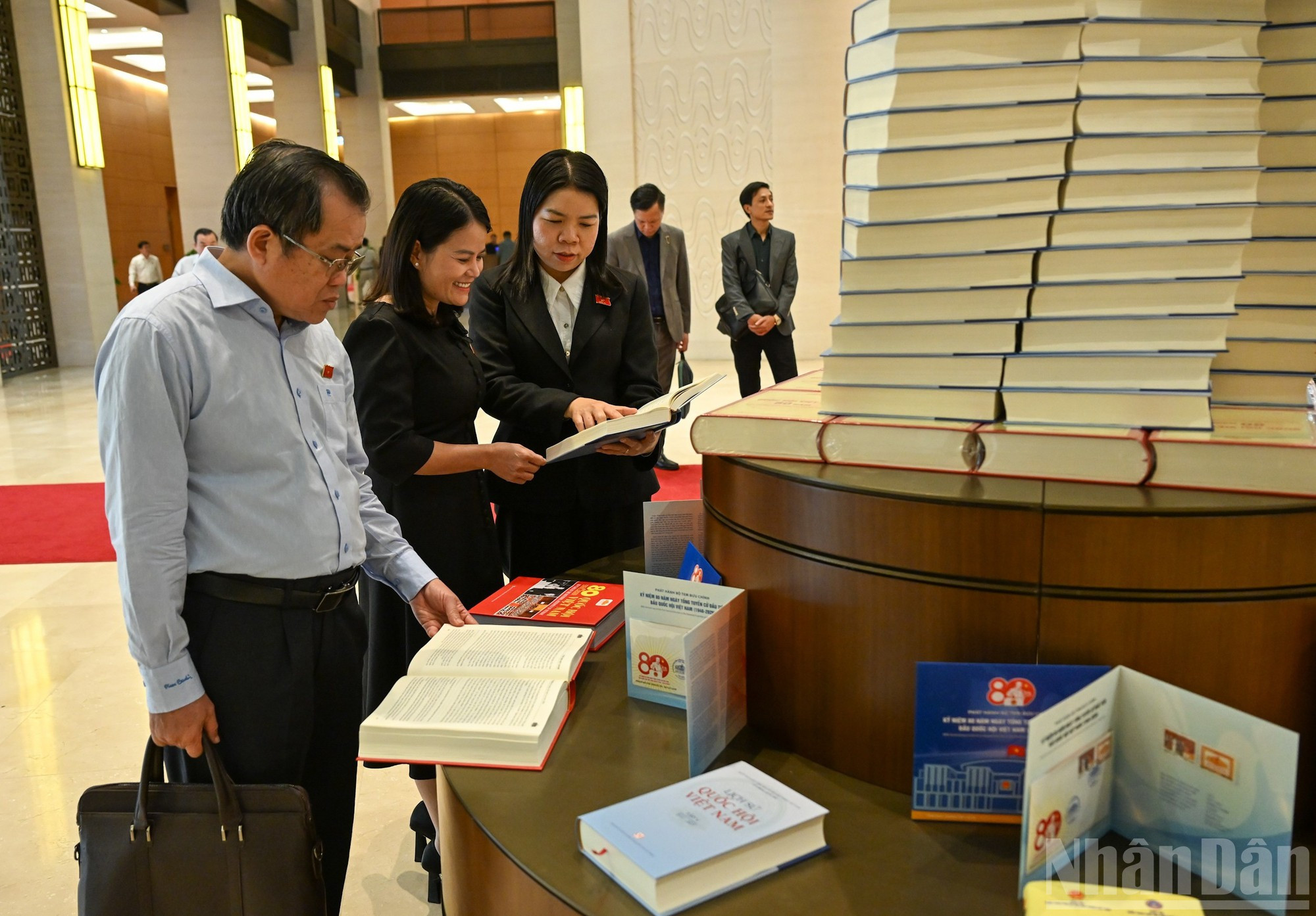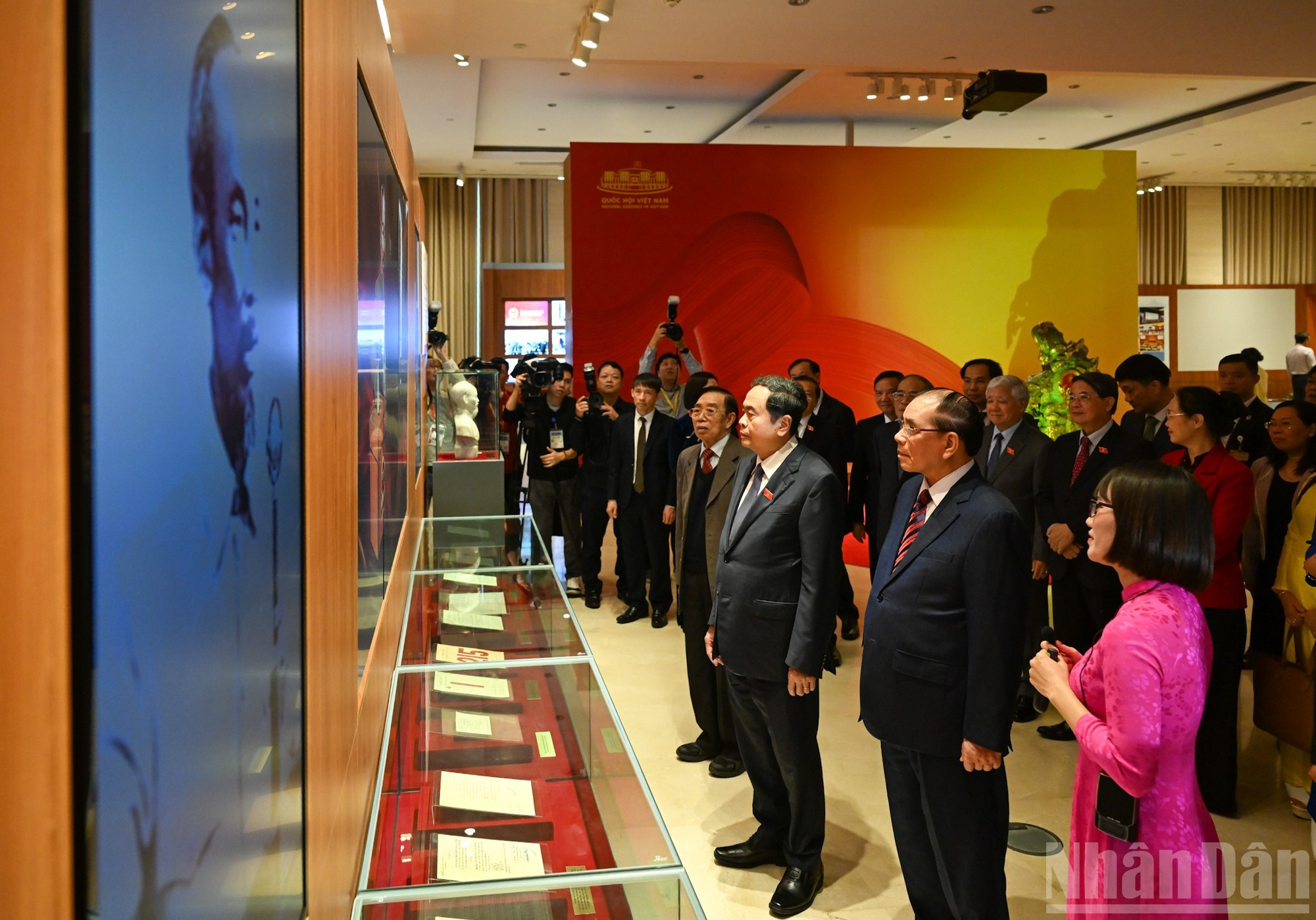 El Museo de la Asamblea Nacional de Vietnam cuenta con un espacio de exhibición de más de 800 m², donde se presentan cerca de mil imágenes y documentos, así como 250 objetos destacados. Asistentes al acto. El secretario general de la Asamblea Nacional y jefe de la Oficina Parlamentaria, Le Quang Manh, presenta un informe sobre el proceso de construcción del Museo, así como sobre la emisión del sello postal conmemorativo por el 80º aniversario del órgano legislativo de Vietnam. Libros y publicaciones conmemorativas del 80º aniversario de la Asamblea Nacional de Vietnam.