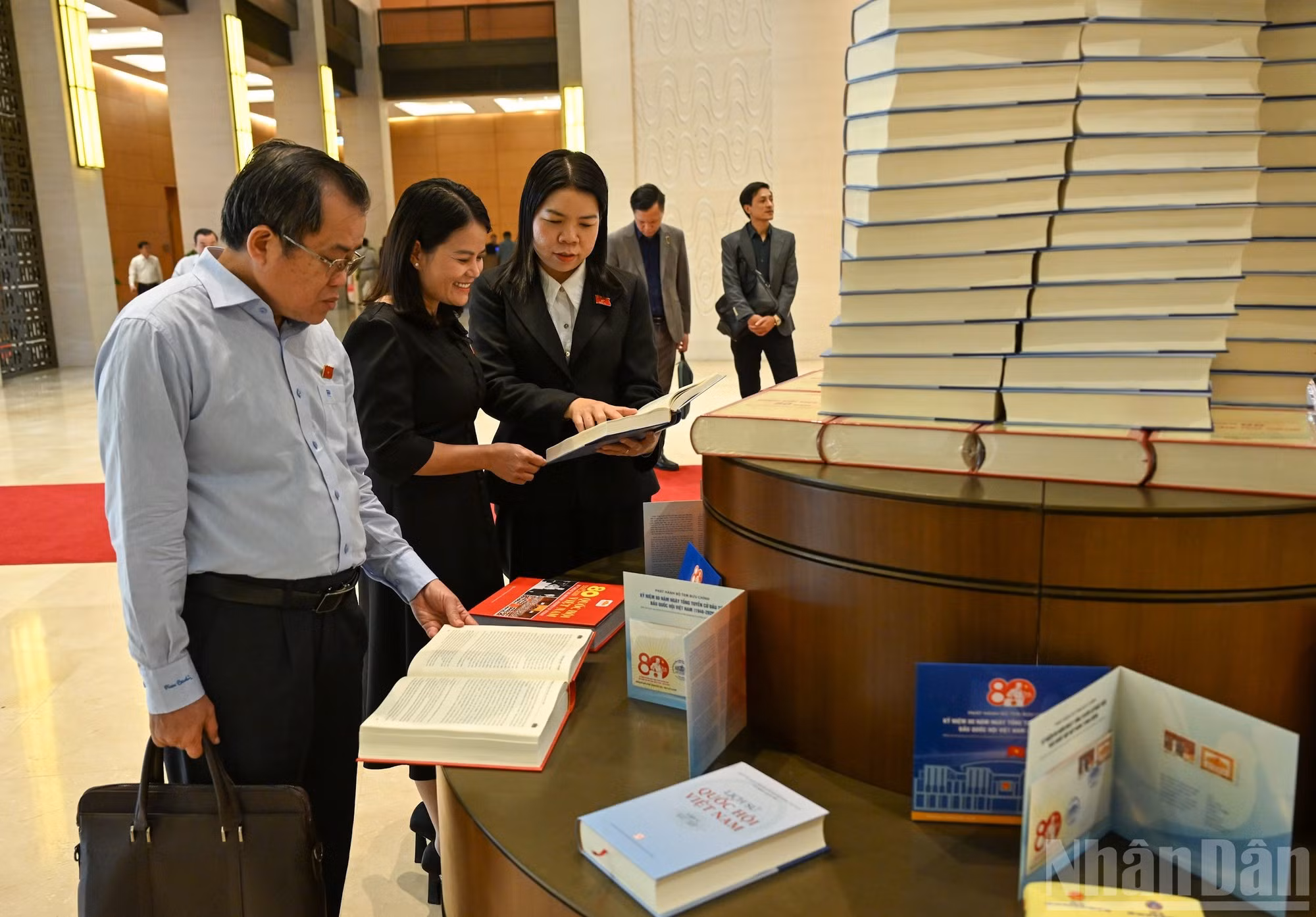 El Museo de la Asamblea Nacional de Vietnam cuenta con un espacio de exhibición de más de 800 m², donde se presentan cerca de mil imágenes y documentos, así como 250 objetos destacados.Asistentes al acto.El secretario general de la Asamblea Nacional y jefe de la Oficina Parlamentaria, Le Quang Manh, presenta un informe sobre el proceso de construcción del Museo, así como sobre la emisión del sello postal conmemorativo por el 80º aniversario del órgano legislativo de Vietnam.Libros y publicaciones conmemorativas del 80º aniversario de la Asamblea Nacional de Vietnam.