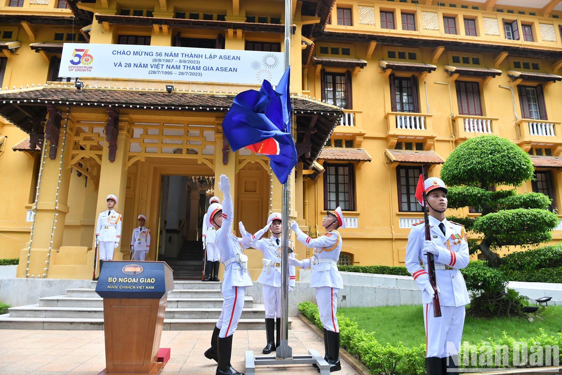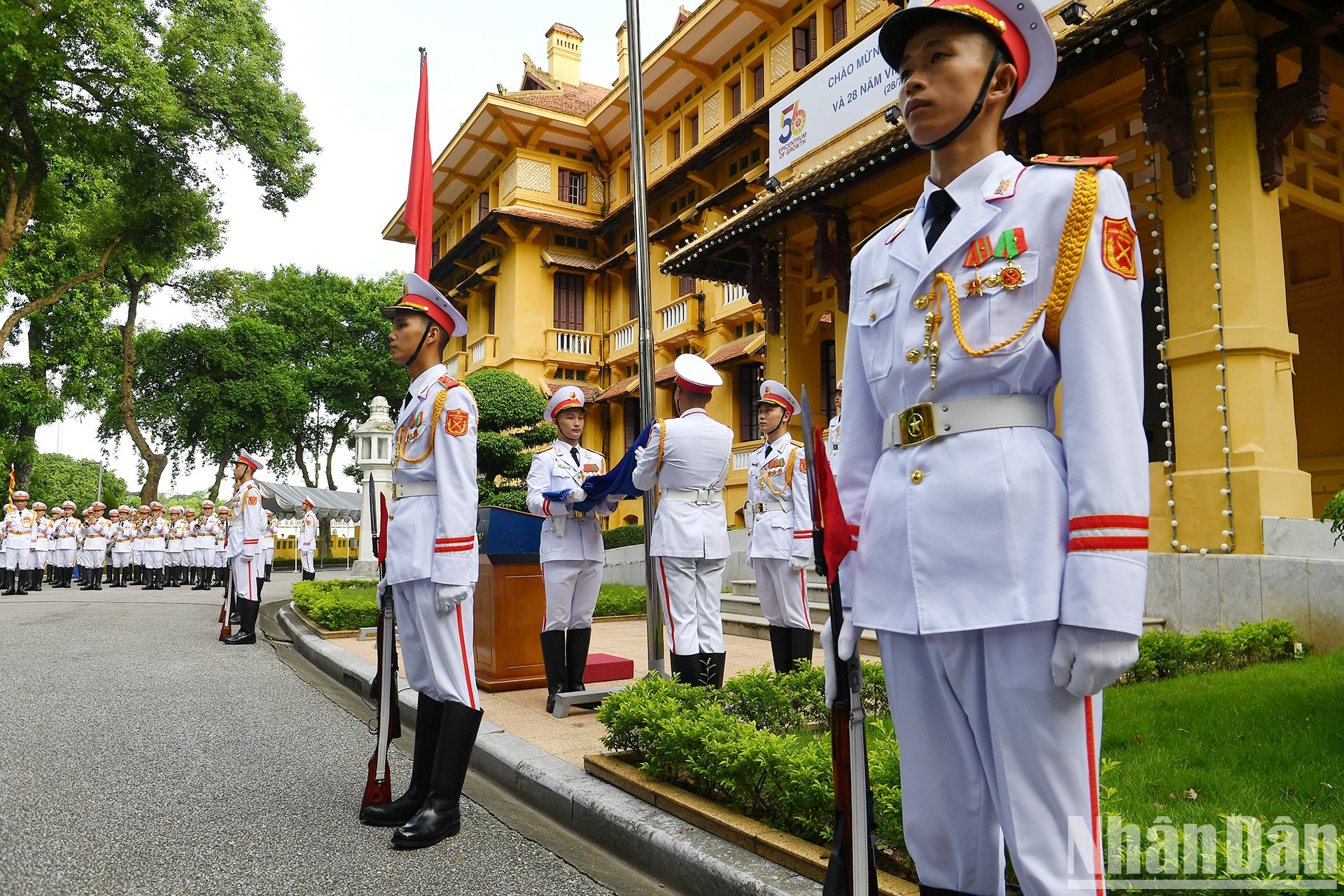 | El canciller Bui Thanh Son saluda a los miembros del cuerpo diplomático y a los representantes de las embajadas de los países integrantes de la ASEAN en Vietnam. |