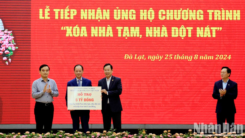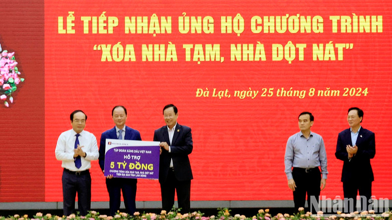| Después de la ceremonia de lanzamiento en abril de 2024, muchas agencias, organizaciones y empresas en Lam Dong responden y donan hasta la fecha un monto de alrededor de 900 mil dolares al Fondo provincial "Para los Pobres" para eliminar viviendas destartaladas. |