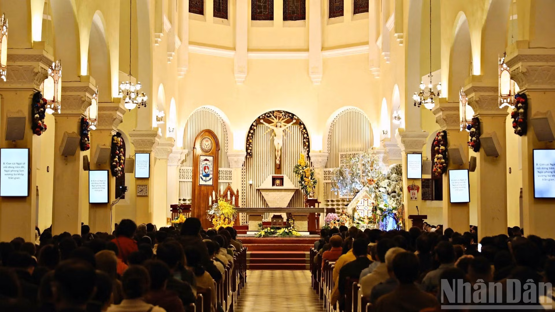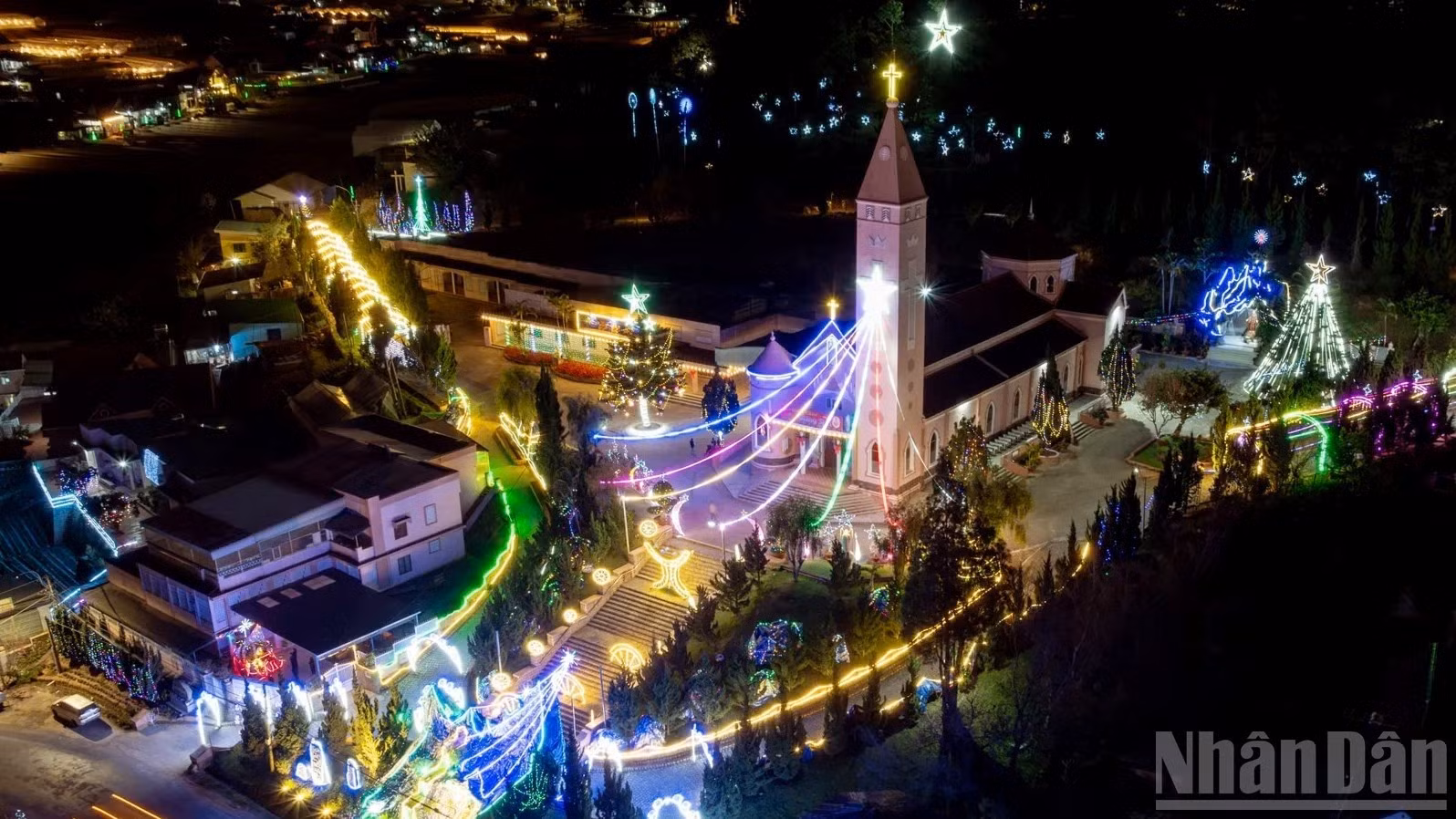 Por estos días los brillantes colores y la música navideña crean una alegre sinfonía invernal en las parroquias de la meseta de Lang Biang.