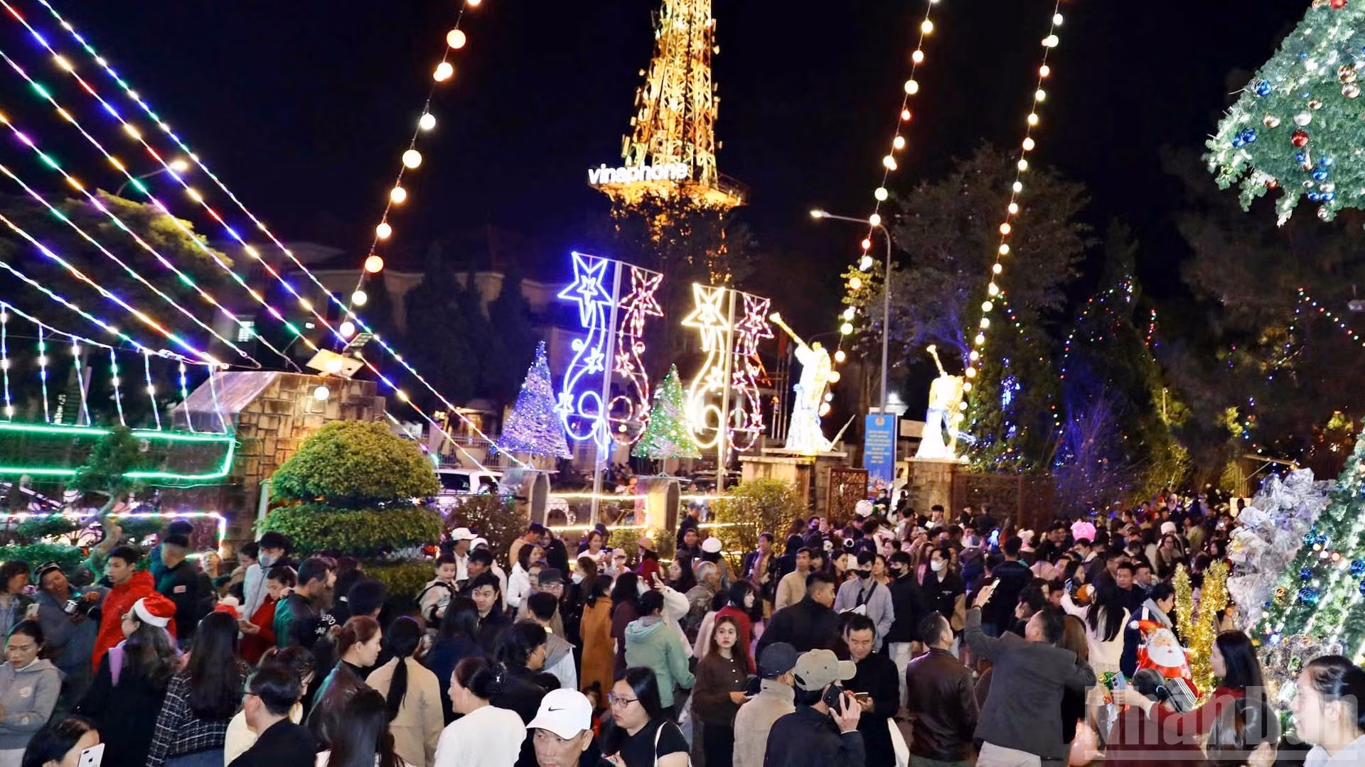 Multitudes recorren las calles de Da Lat en la noche de Navidad.