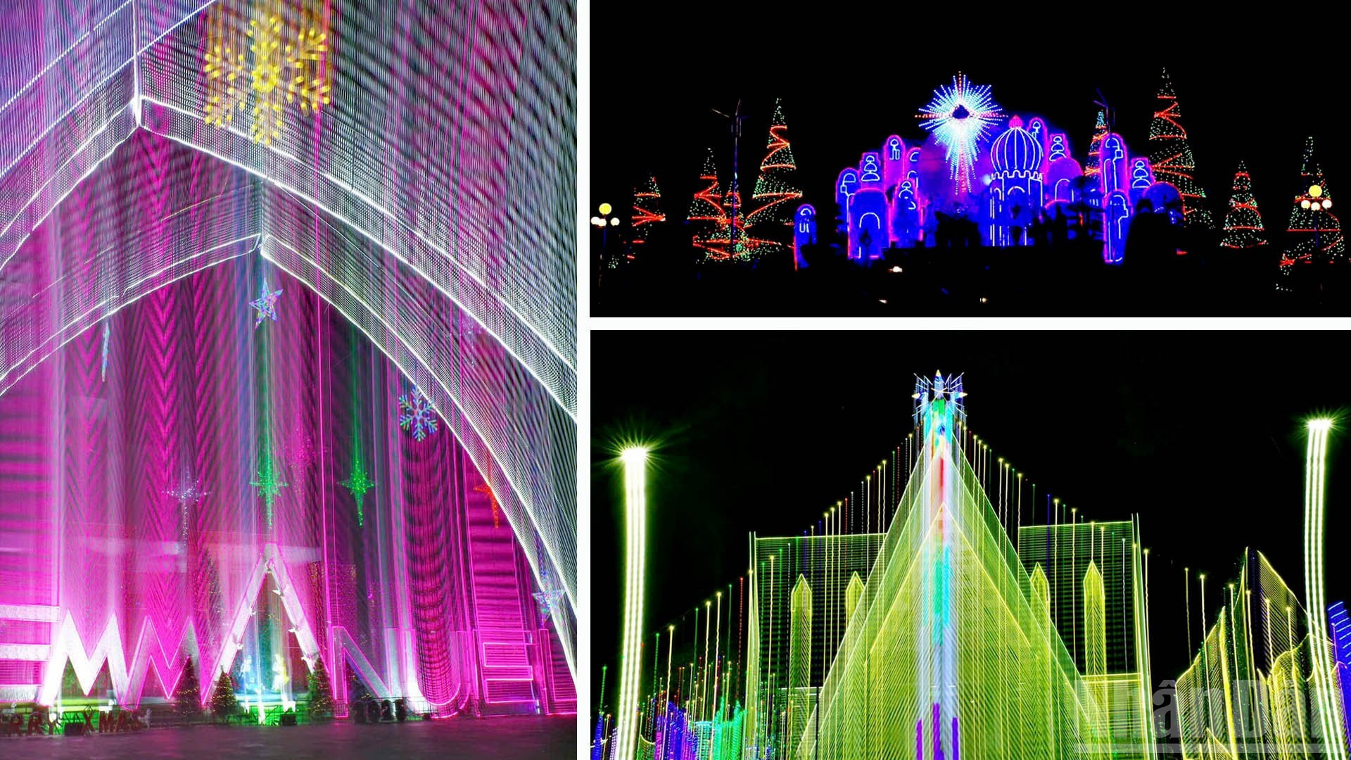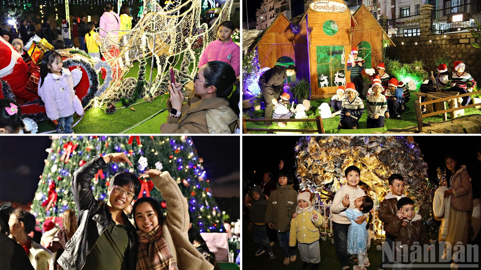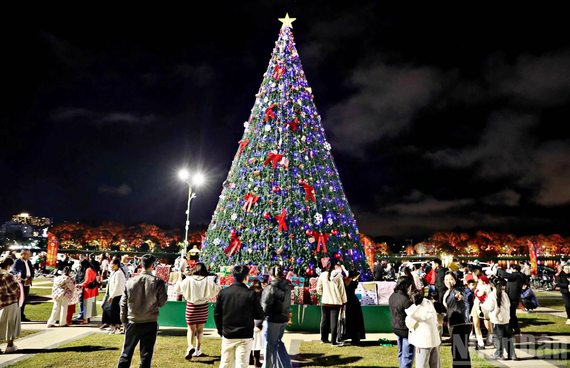 En la plaza de Lam Vien, el árbol de Navidad de brillantes colores se convierte en el centro de atención, incitando a muchos a tomar fotos de recuerdo.